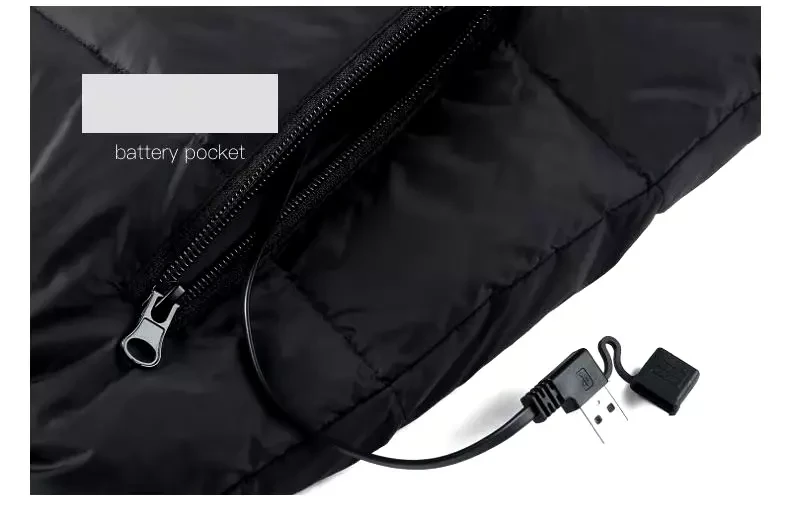 Electric USB Jacket Men Women Heated Vest Warm Winter Coat Thermal Heat Black-M
